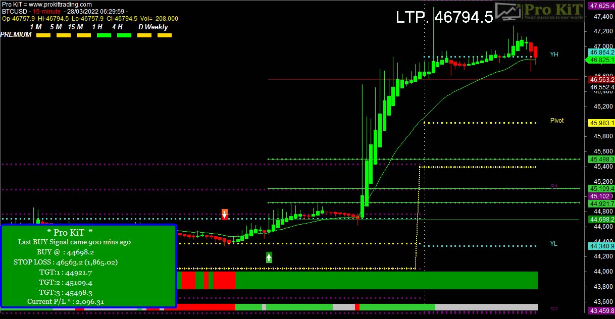 Pro KiT software works in volatile and sideways market very smoothly. It gives only accurate signals in a day, so there is NO confusion in any market condition. More strength & best success ratio between profit & loss in Forex and Crypto market.